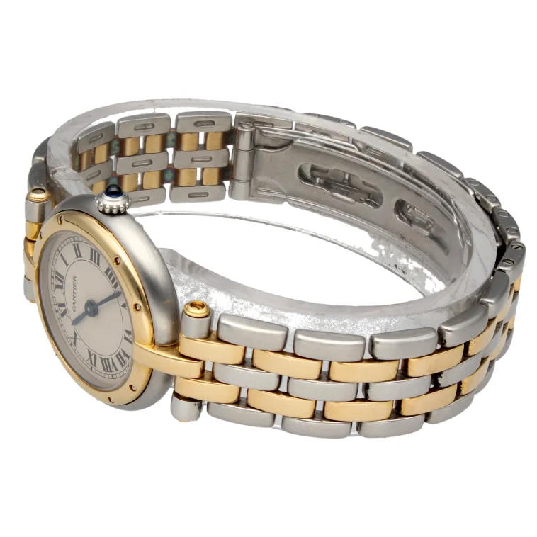 Iconico Cartier Panthère referenza 166920, simbolo di eleganza senza tempo e stile raffinato. La combinazione acciaio/oro e il classico quadrante bianco con numeri romani rendono questo modello estremamente riconoscibile e versatile, perfetto sia per un utilizzo quotidiano che per occasioni più formali.