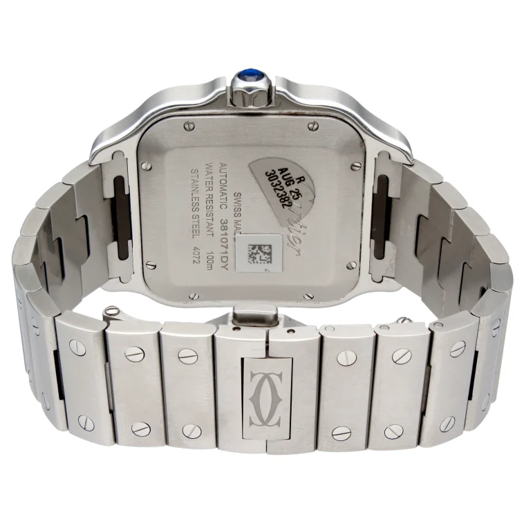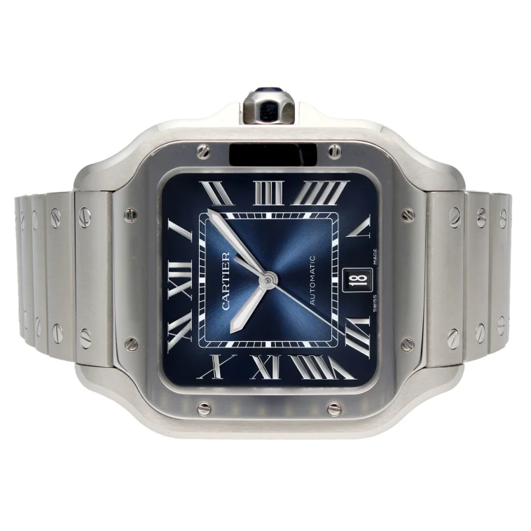 Il Santos rappresenta una delle creazioni più riconoscibili dell’orologeria mondiale, caratterizzata dalla cassa squadrata con viti a vista e dal sistema QuickSwitch che consente la sostituzione rapida del cinturino senza strumenti.
