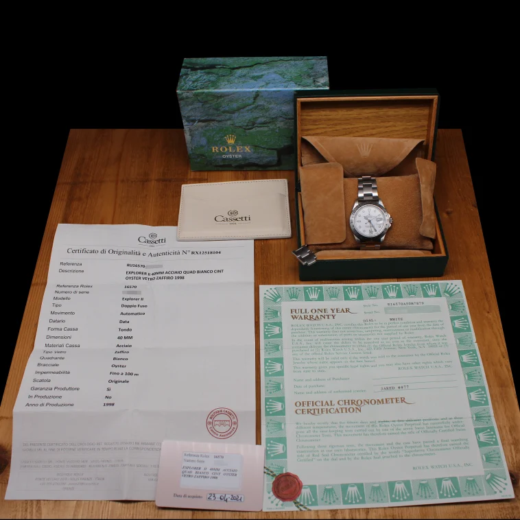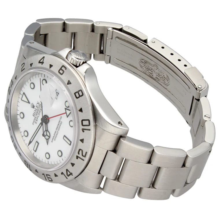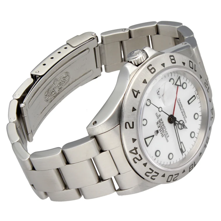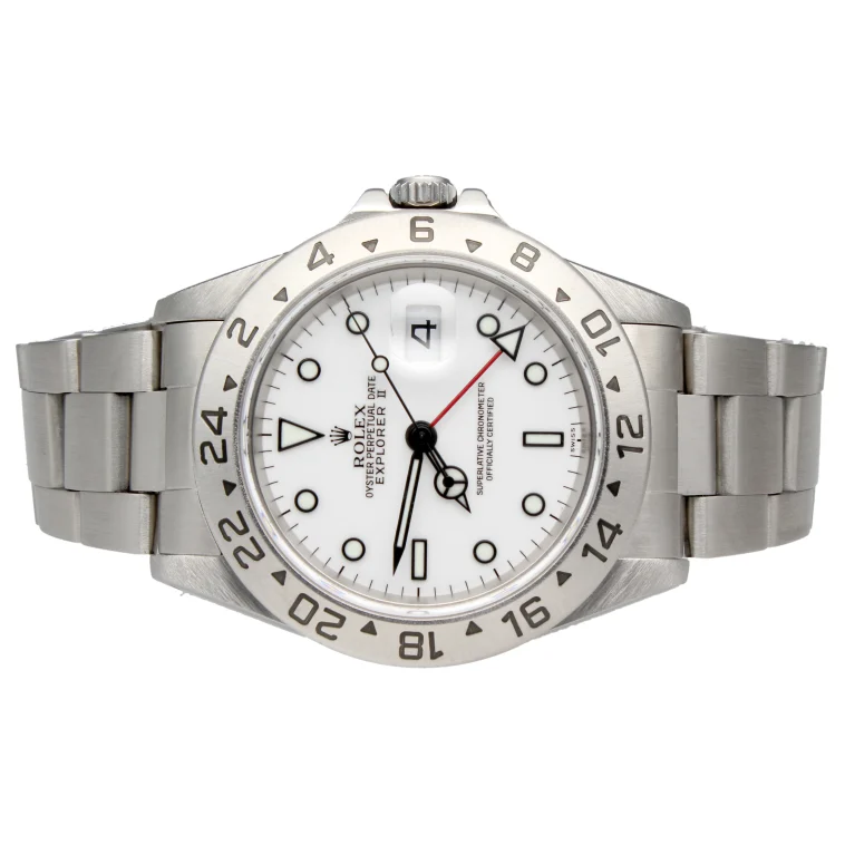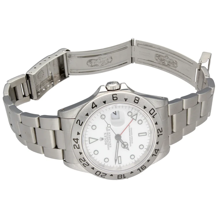 Rolex Explorer II nella classica configurazione “Polar” con quadrante bianco, una delle varianti più iconiche e apprezzate della referenza 16570. Prodotto alla fine degli anni ’90, rappresenta un perfetto equilibrio tra sportività e indossabilità quotidiana, con dimensioni da 40 mm e un’estetica pulita e altamente leggibile. Esemplare completo di corredo.