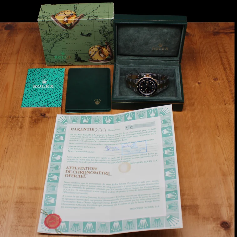 Esemplare del novembre 1986, seriale 967XXXX, in configurazione acciaio e oro, completo di corredo.