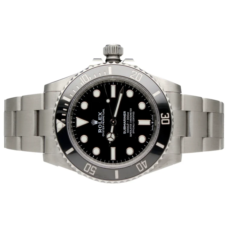 Iconico Rolex Submariner nella sua versione no date, con quadrante nero e ghiera Cerachrom. Un classico intramontabile, sportivo ed essenziale, perfetto per ogni occasione.